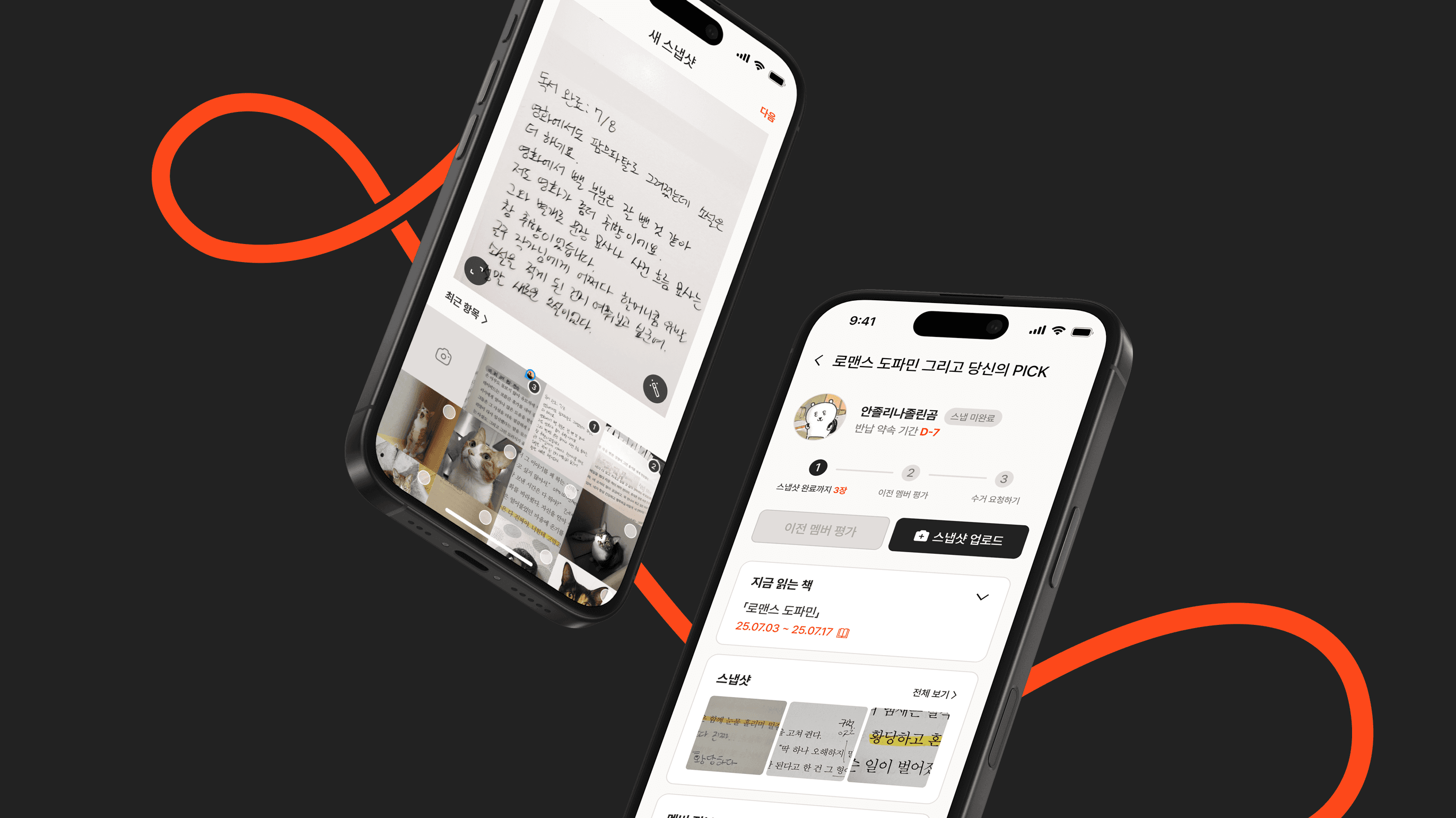 나와 멤버들이 올린 스냅샷을 한눈에 확인하며, 서로의 독서 경험을
