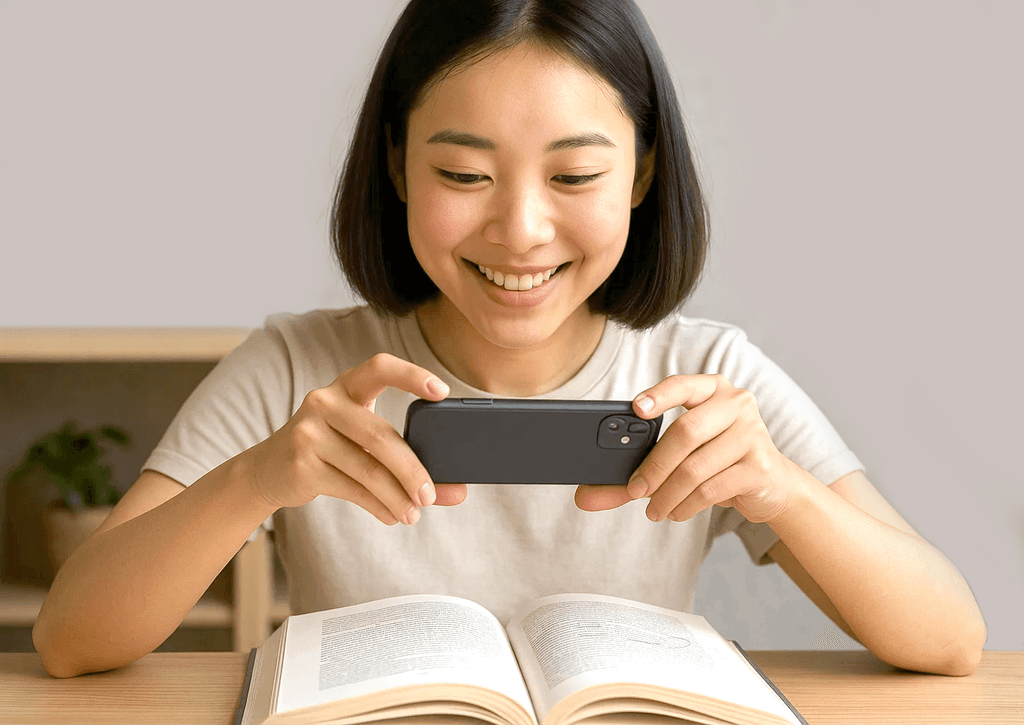 책을 읽으며 스냅샷 업로드 버튼을 눌러 사진을 간편하게 등록합니다.